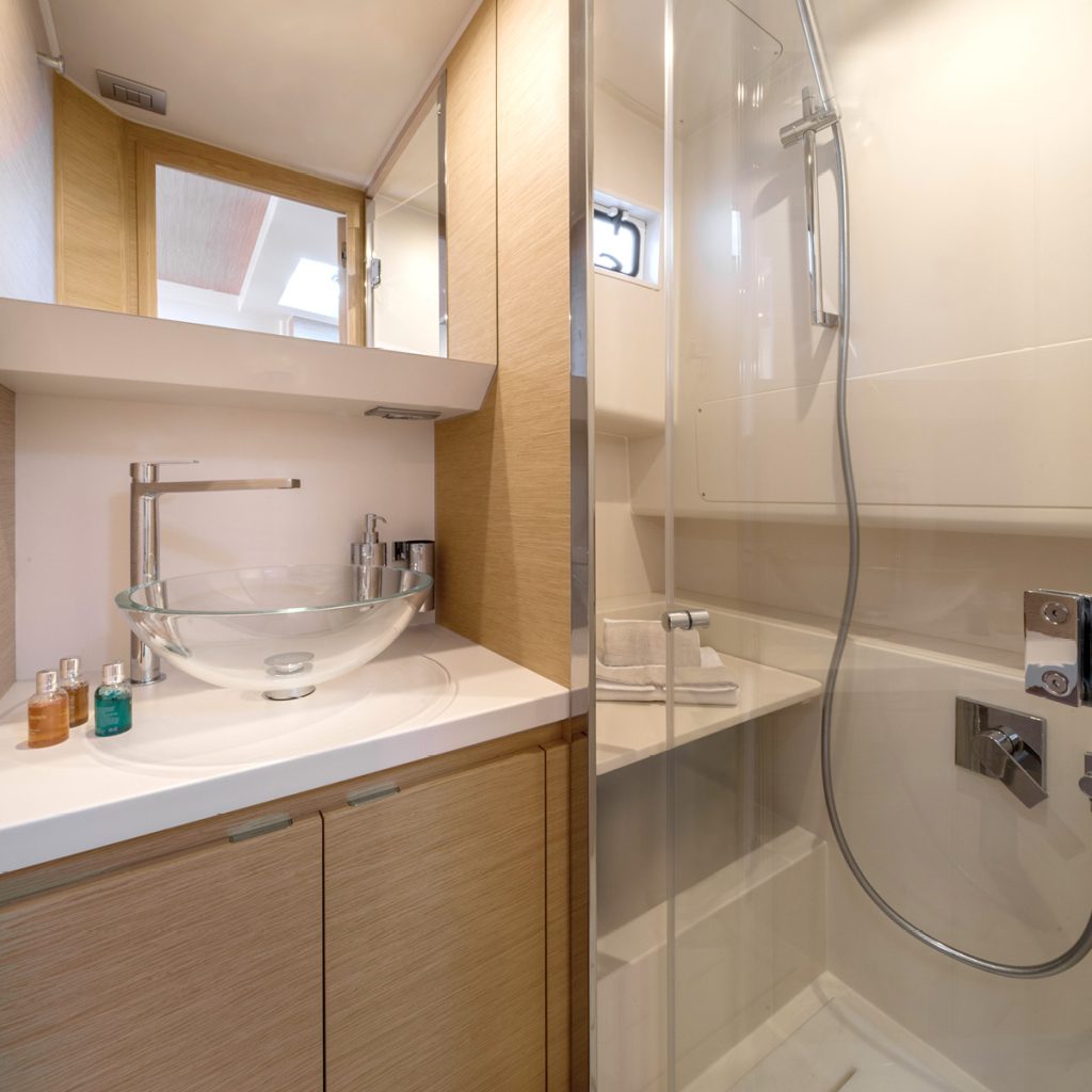 Ducha separada con puerta de cristal Es el único yate abierto de 40 pies que dispone de una zona de ducha separada con puerta de cristal.