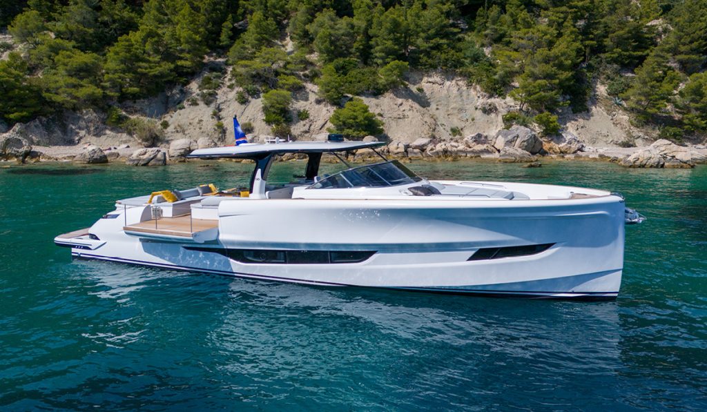 El walkaround completo garantiza un movimiento fácil y seguro de proa a popa, incluso durante la navegación. Todo esto convierte a la nueva 60 Open en una auténtica «reina del mar» con una velocidad máxima de 40 nudos.